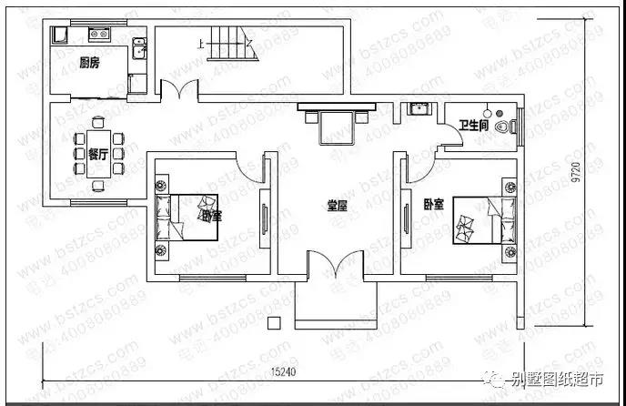 一 層:堂屋、2臥室、廚房、餐廳、衛(wèi)生間