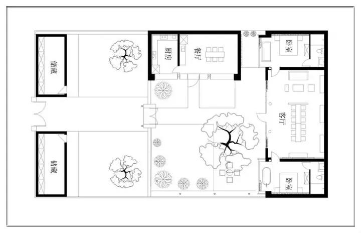 對稱工整的院落組合,雖然在布局上符合現(xiàn)代生活的需求,但由于長期無人居住,早已變得雜草叢生,展現(xiàn)出一副破敗、冷清的模樣。設計師李帥經(jīng)過一系列設計讓小院重新煥發(fā)以往的生機。他把原先的門面拆掉,改用磚瓦結(jié)構(gòu)搭建起來,然后將大門兩側(cè)的部分墻體往外凸出,盡顯宅院的氣勢與威嚴。門前改造對比滿眼荒草的院子里,經(jīng)過一番細心的收拾和整理后,視覺上清爽了許多,庭院和過道一目了然。兩間結(jié)構(gòu)完整的老磚房,原先存在著陰暗、潮濕的缺陷,但設計師采用了一個巧妙的辦法,將厚實的部分外墻拆除掉,然后用更為輕盈通透的玻璃移門來代替。這樣一來,自然光線順勢進入室內(nèi)空間,采光和通風問題一并得到了解決。整個小院一共擁有兩間臥室,每一間都精心打造出完美的氛圍。其中一間主臥,素面朝天的床頭背景墻保留了原始粗糙的水泥質(zhì)感,但設計師通過豐富的光影變化,和一截充滿禪意的枯樹枝來營造意境,最終形成別具一格的睡眠空間。另一間主臥的背景墻保留了同樣的基底,但用一幅色彩鮮明的裝飾畫加以點綴,令整個空間更多地彌漫出藝術(shù)的氣息。