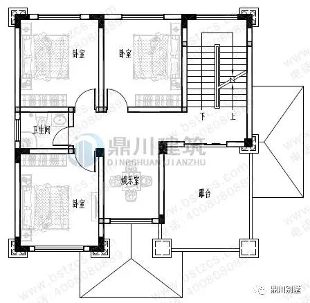 三 層:娛樂室、3臥室、衛(wèi)生間、露臺(tái)