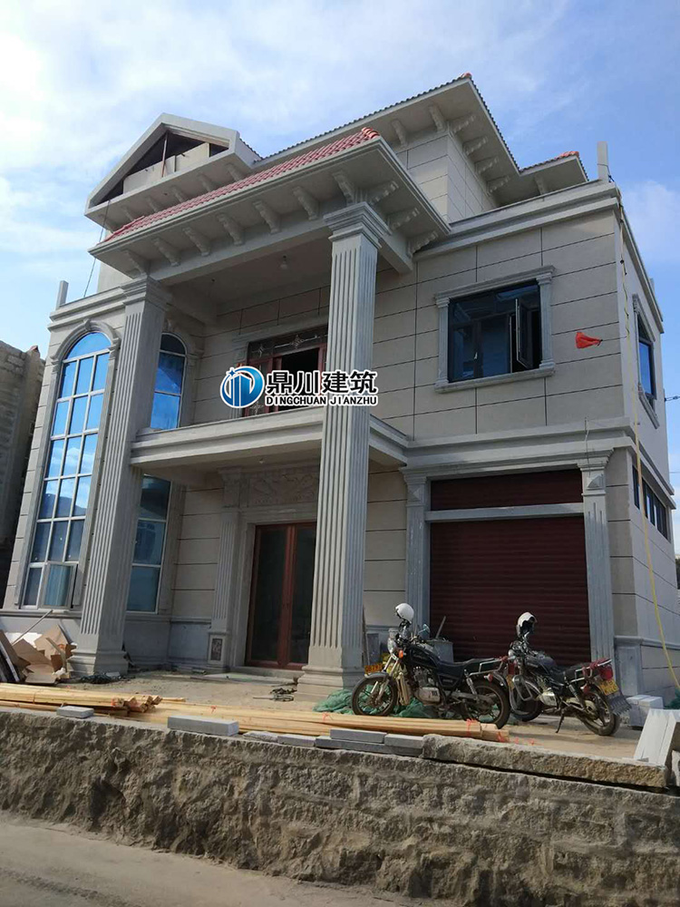 這是一款新農(nóng)村三層別墅設(shè)計(jì)圖紙施工的實(shí)拍。此款建房實(shí)例精美脫俗,藍(lán)色的弧形落地窗搭配米色的外墻,特有的質(zhì)感詮釋的淋漓極致。整個(gè)外墻裝飾給人感覺很沉穩(wěn)、大氣。而且落地窗使得整個(gè)房子的氣場(chǎng)大增。高貴而時(shí)尚。方形的羅馬柱搭配起來很顯恢宏!