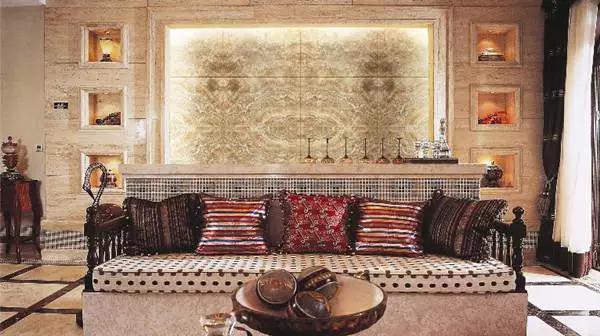 金啡洞產(chǎn)品紋理以金黃色漸變?yōu)樘厣?,屬稀有礦產(chǎn)資源大理石品種,凹凸小坑手感細(xì)膩,立體的視覺震撼,使得整個空間充滿著強(qiáng)烈的文化和歷史韻味。