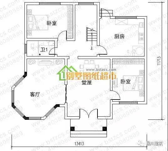 一 層: 堂屋、客廳、2臥室、廚房(兼餐廳)、衛(wèi)生間