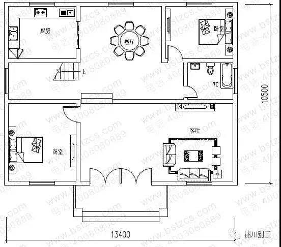 一 層: 客廳、臥室(附衛(wèi)生間)、廚房、餐廳、衛(wèi)生間