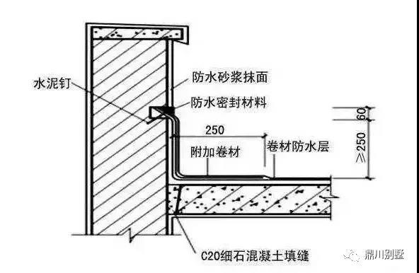 這種在平立面相交處進(jìn)行的防水處理,目的是為了防止水平樓面或水平屋面與垂直墻面接縫處滲漏。