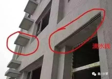 滴水線是一條1cm左右的凹形的線條,一般在天溝、雨蓬、窗口、樓梯踏步下、陽臺(tái)和突出外墻的腰線等部位設(shè)置。