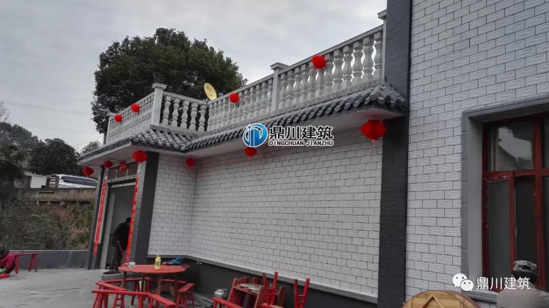 戶主根據(jù)自己的需求,對效果圖做了稍稍的調(diào)整,墻體用的是白色的瓷磚。暗紅色的窗套也增添了房子的亮色。房子整體來看,還是頗具中式韻味的。