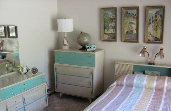 7、多數(shù)人雖然喜歡有創(chuàng)意的燈具設(shè)計,但出于保守的整體臥室風(fēng)格考慮,最終依然會選擇中規(guī)中矩的燈具。這個八十年代風(fēng)格的臥室搭配一個老款射燈,就是個不錯的選擇,簡單的外形和整潔的臥室相得益彰,暖暖的燈光讓臥室充滿溫馨。