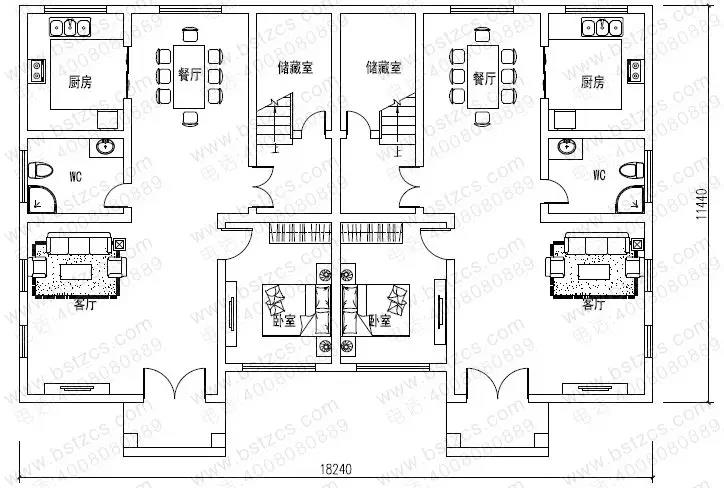 一 層: 客廳、臥室(附衛(wèi)生間)、廚房、餐廳、儲(chǔ)藏室、衛(wèi)生間