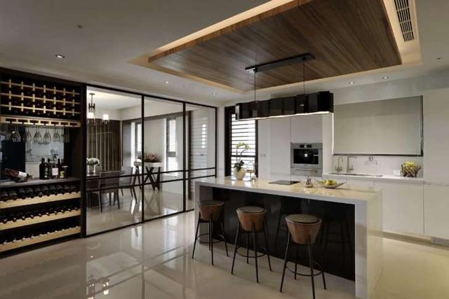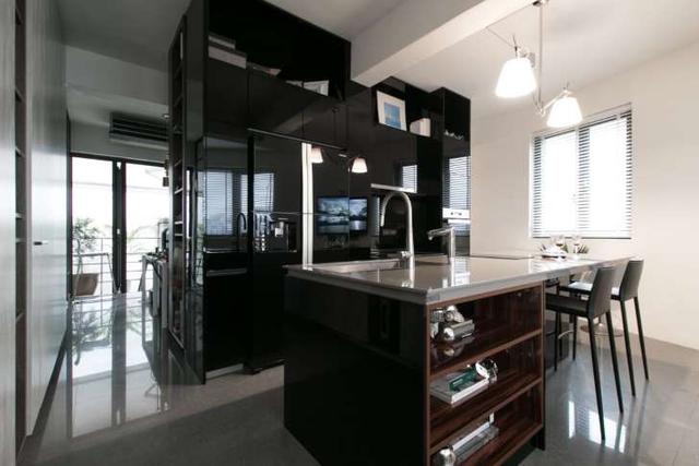喜歡低調(diào)奢華的風(fēng)格,可以選擇全黑色系的家電與櫥柜,由于廚房墻面是白色的,因此空間一點(diǎn)也不會(huì)顯得有壓迫感。中島廚房除了機(jī)能性高,還有收納空間,非常實(shí)用。