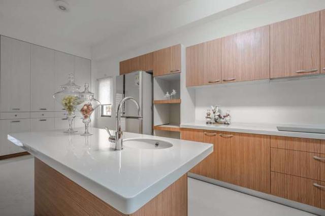 如果說(shuō)你強(qiáng)調(diào)廚房的機(jī)能性,那么可以當(dāng)作早餐吧臺(tái)使用的中島是最棒的選擇。這樣的設(shè)計(jì)對(duì)于煮飯的人來(lái)說(shuō),也更為便利,還能讓烹飪的時(shí)光更有互動(dòng)性!