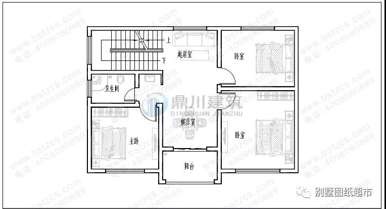 二 層:起居室、娛樂室(附陽(yáng)臺(tái))、3臥室、衛(wèi)生間