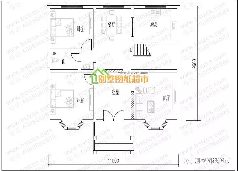 一 層:堂屋、客廳、2臥室、廚房、餐廳、衛(wèi)生間