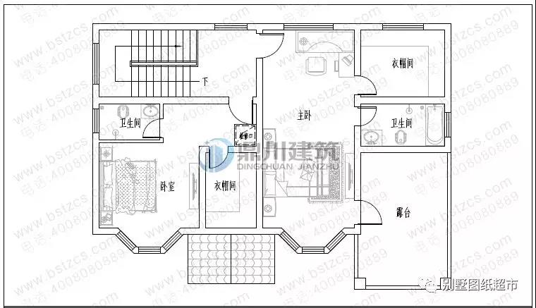 二 層:主臥(附衣帽間,衛(wèi)生間,露臺(tái))、臥室(附衣帽間,衛(wèi)生間)