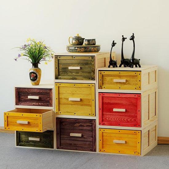 方正、規(guī)矩的斗柜可能會顯得單調(diào)和枯燥,用幾個不同尺寸的斗柜組合起來就不會存在這樣的問題,不同的大小可以滿足對不同收納容量的需求,鮮艷的色彩也能讓家居空間更加亮眼。