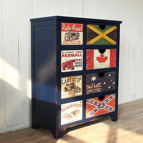 用老廣告和國旗圖案作為斗柜噴繪顯得個性十足,無論是鐘情于美式、英倫還是復(fù)古風(fēng)格,它都是你的不二選擇。