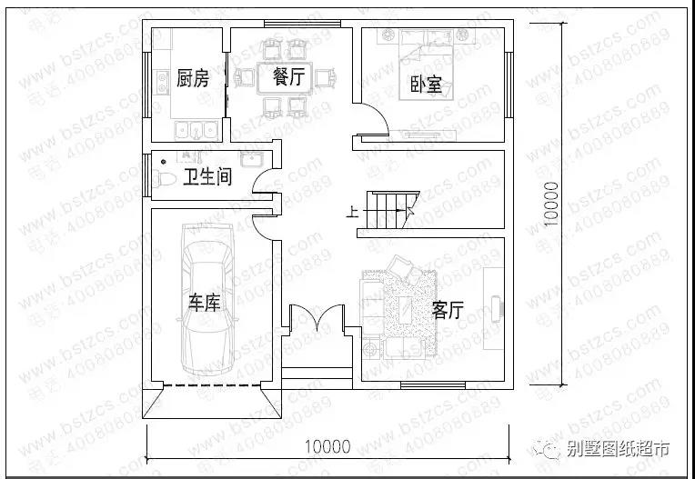 一 層:客廳、臥室、廚房、餐廳、衛(wèi)生間、車庫