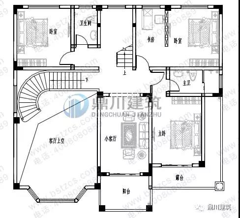 二 層: 客廳(附陽臺)、主臥(附衛(wèi)生間)、3臥室、衛(wèi)生間