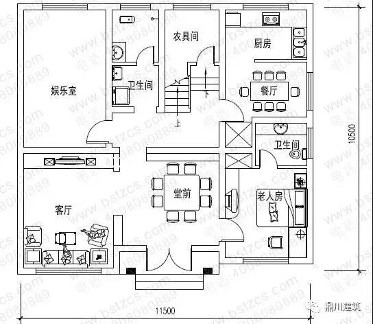 一 層: 堂屋、客廳、老人房(附衛(wèi)生間)、娛樂室、廚房、餐廳、農(nóng)具間、衛(wèi)生間