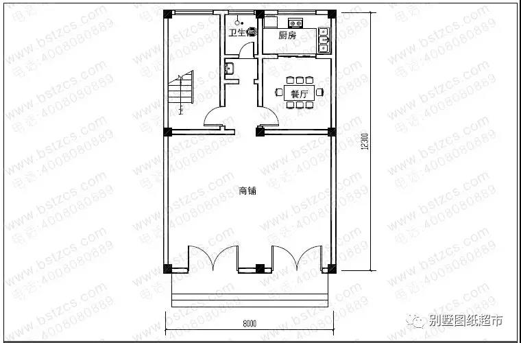 一 層:商鋪、廚房、餐廳、衛(wèi)生間