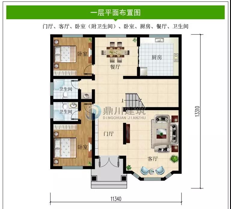 一 層:客廳、臥室(附衛(wèi)生間)、臥室、儲(chǔ)藏室、廚房、餐廳、衛(wèi)生間