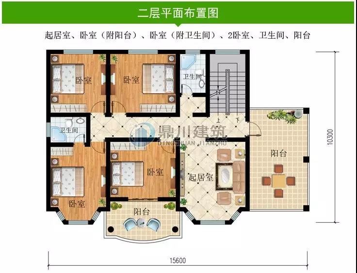 二層設(shè)有起居室、臥室(附陽臺)、臥室(附衛(wèi)生間)、2臥室、衛(wèi)生間、陽臺。樓上的布局很簡單,臥室占主導(dǎo)位置,臥室大小不一,除了自己,來客人,更有選擇性。一大一小兩個陽臺完全滿足農(nóng)村對于晾曬的需求。
