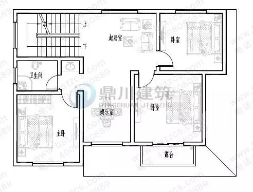 二 層: 起居室、娛樂室、臥室(附露臺)、2臥室、衛(wèi)生間