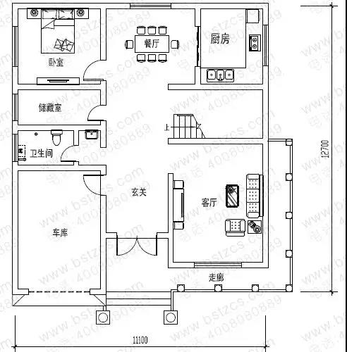 一 層: 走廊、玄關(guān)、客廳、臥室、廚房、餐廳、儲藏室、衛(wèi)生間、車庫