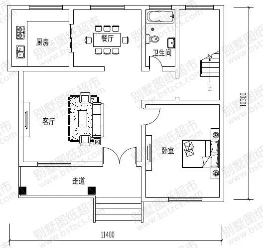 一 層: 走廊、門廳、客廳、臥室、廚房、餐廳、衛(wèi)生間