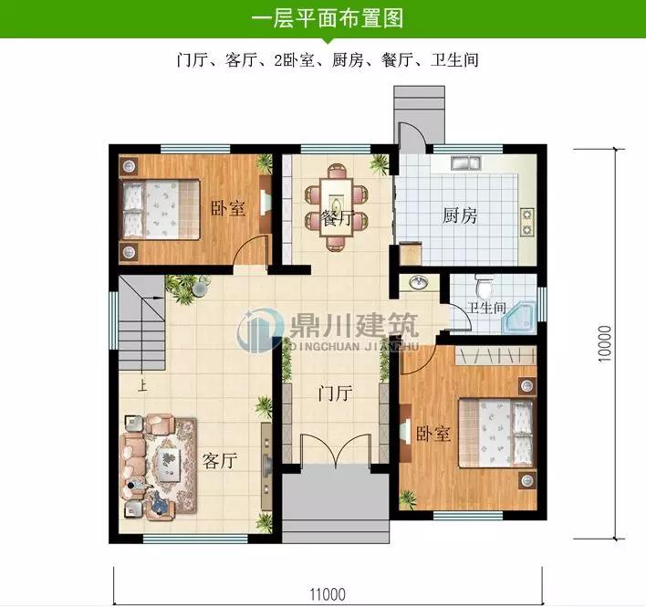 一層入戶即為門廳,客廳和門廳分隔開,保證了室內的私密性,一層帶兩間臥室,二層帶四間臥室,足夠一家三代居住,超大的露臺適合農村休閑,夏日乘涼再好不過!