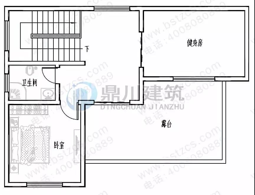三 層:健身房、臥室、衛(wèi)生間、露臺
