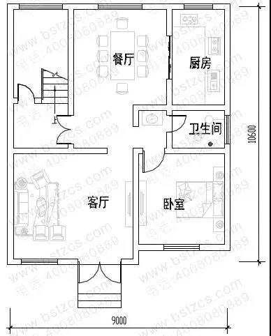 開間: 9米 進(jìn)深: 10.6米