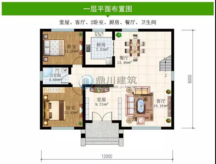 一 層:堂屋、客廳、2臥室、廚房、餐廳、衛(wèi)生間