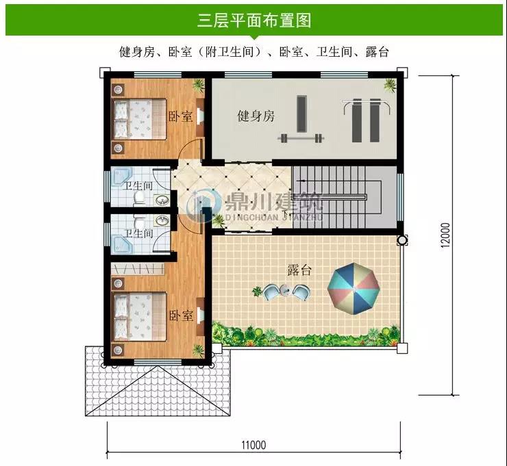 三 層:健身房、臥室、衛(wèi)生間、露臺