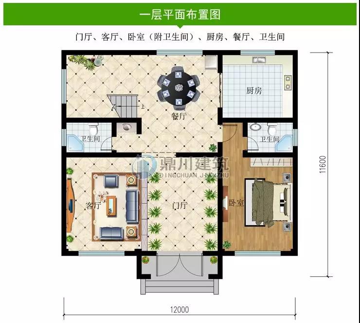 一 層:門廳、客廳、臥室(附衛(wèi)生間)、廚房、餐廳、衛(wèi)生間