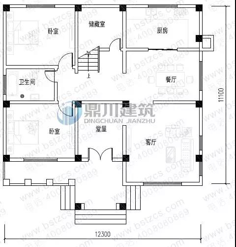 一 層:走廊、堂屋、客廳、2臥室、廚房、餐廳、衛(wèi)生間、儲藏室