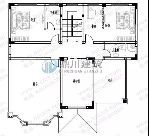 三 層: 活動室、2臥室、書房、衛(wèi)生間、露臺