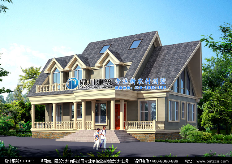 L0312B漂亮的二層小別墅圖紙效果圖,農(nóng)村二層別墅設(shè)計