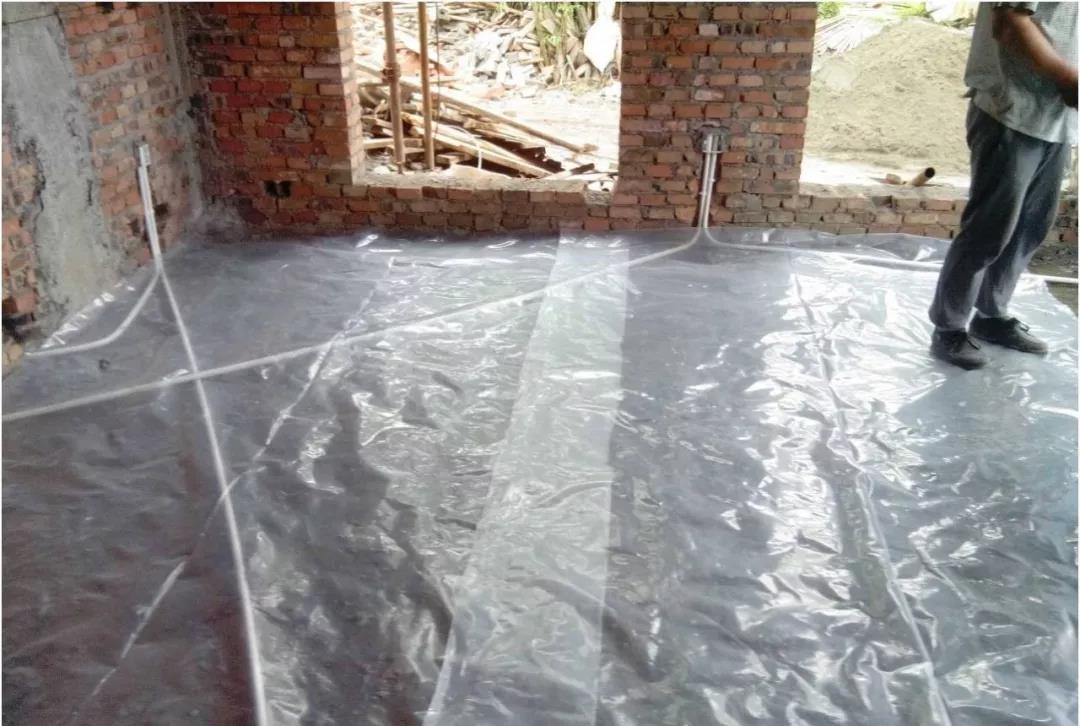 主體完成后,還需對(duì)室內(nèi)地面進(jìn)行找平,在混凝土澆筑前,鋪設(shè)薄膜防潮。這是學(xué)自日本的防潮技術(shù),簡(jiǎn)單實(shí)用,對(duì)于防止地下水返潮作用明顯。