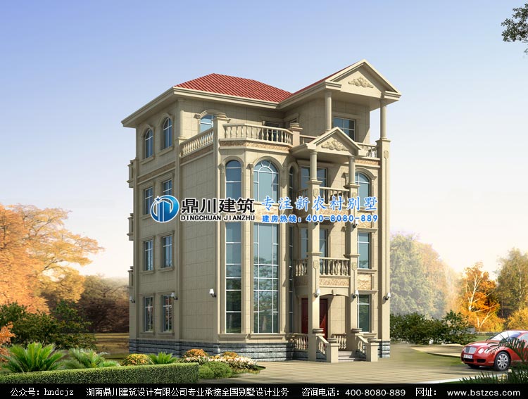 HY001四層帶露臺(tái)別墅設(shè)計(jì)圖紙外觀效果圖,鼎川建筑四層別墅設(shè)計(jì)