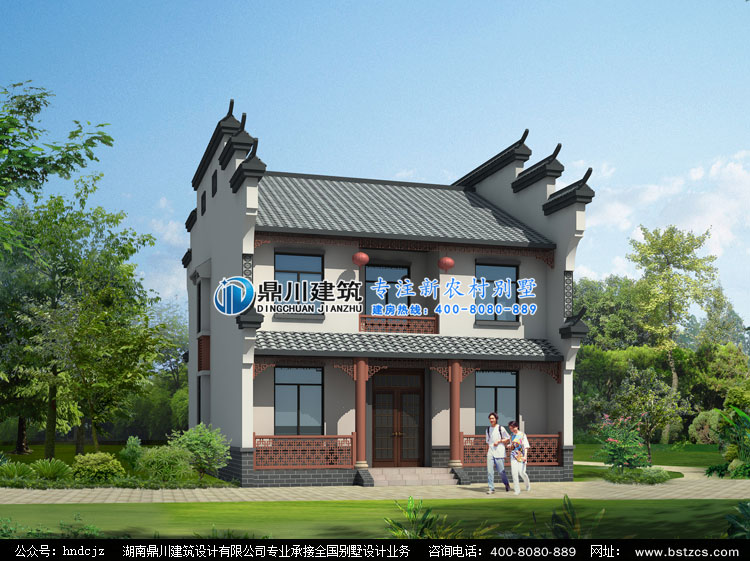 D0229二層中式徽派小別墅設(shè)計(jì)圖效果圖,鼎川建筑中式別墅設(shè)計(jì)