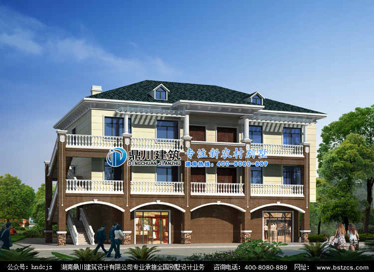 L0244三層帶門面自建房屋設(shè)計(jì)圖外觀效果圖,鼎川設(shè)計(jì)門面房設(shè)計(jì)圖紙