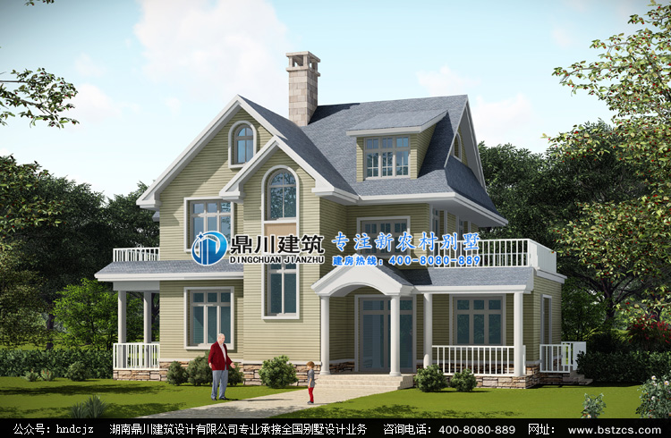 J0179漂亮的美式二層帶閣樓小別墅設計圖,鼎川建筑美式別墅設計外觀效果圖