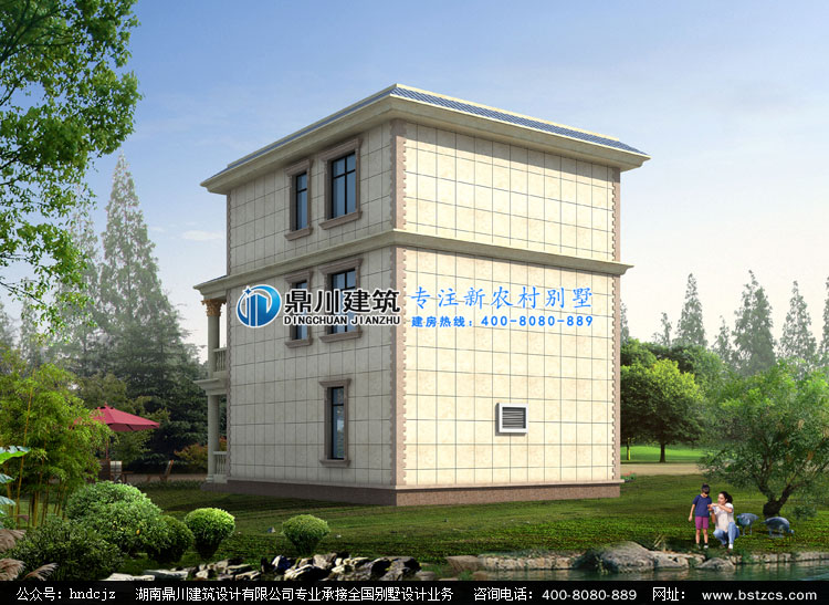 HY046三層平屋頂歐式別墅設(shè)計(jì)圖外觀效果圖,鼎川建筑三層別墅設(shè)計(jì)