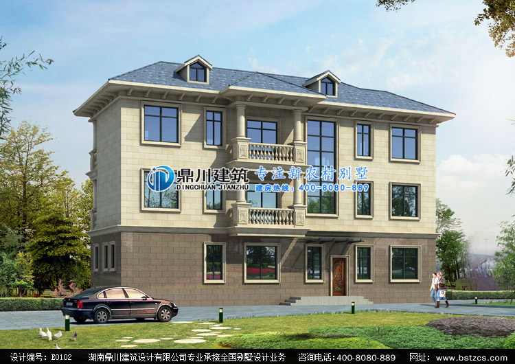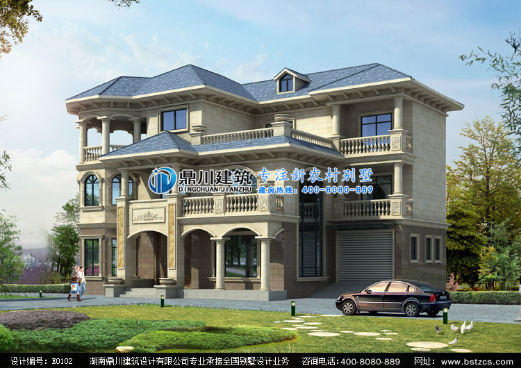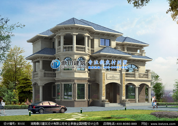 E0102漂亮的歐式三層別墅圖紙?jiān)O(shè)計(jì)外觀效果圖,鼎川建筑私人定制設(shè)計(jì)