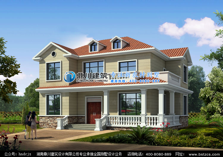L0262新農(nóng)村二層別墅設(shè)計(jì)圖紙效果圖,鼎川建筑農(nóng)村兩層別墅設(shè)計(jì)