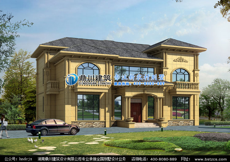 XT056二層歐式別墅圖紙外觀設(shè)計圖,鼎川建筑二層別墅圖紙設(shè)計