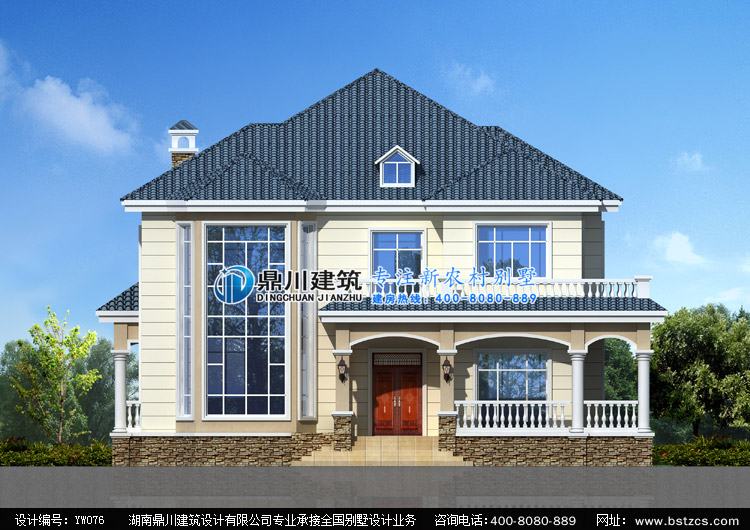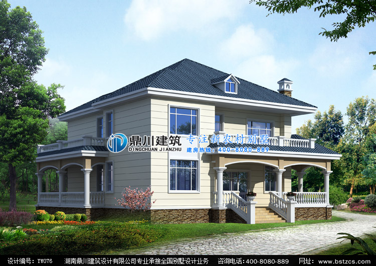 > 設(shè)計(jì)案例 > YW076二層帶露臺(tái)別墅設(shè)計(jì)外觀全方位效果圖,鼎川建筑農(nóng)村二層自建別墅設(shè)計(jì)圖紙效果圖您好,歡迎光臨別墅圖紙超市!