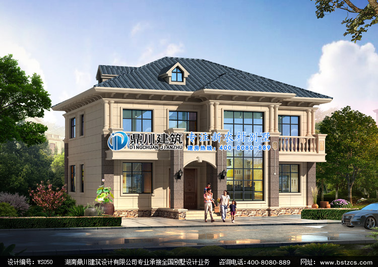 WS050復(fù)式二層帶車庫歐式別墅設(shè)計圖紙效果圖,新農(nóng)村二層別墅設(shè)計圖