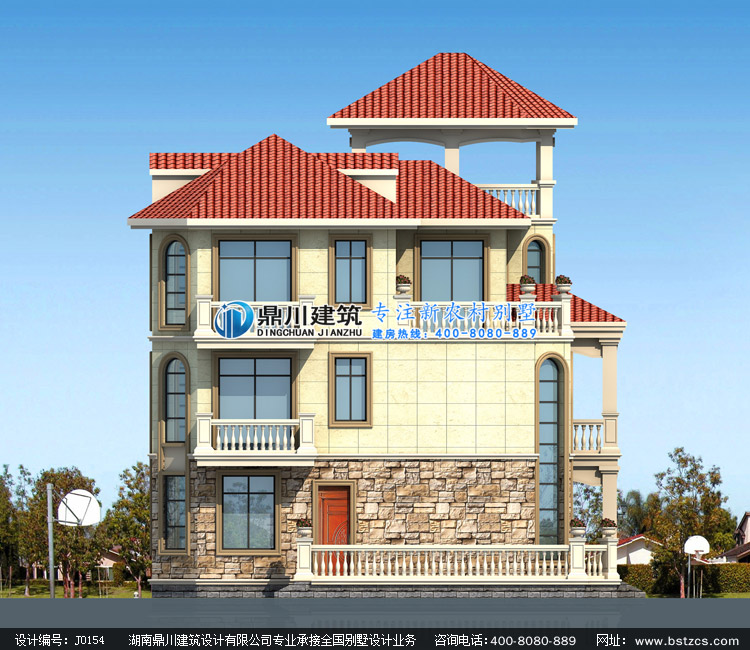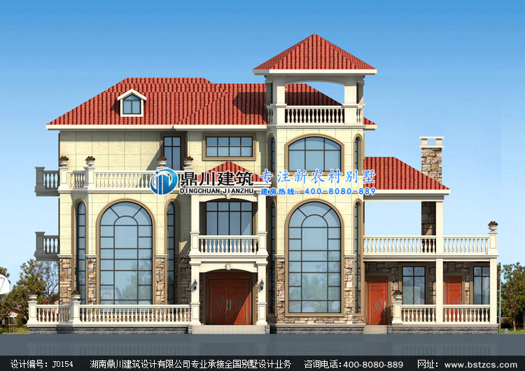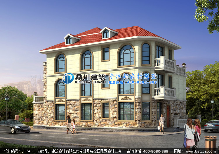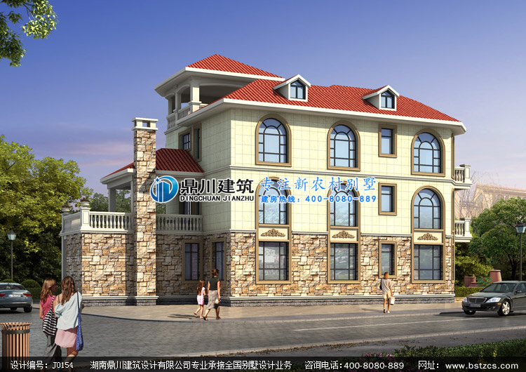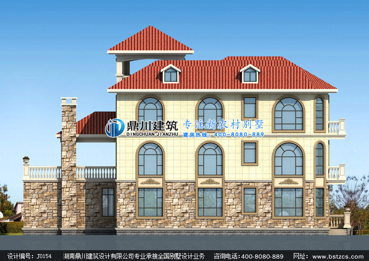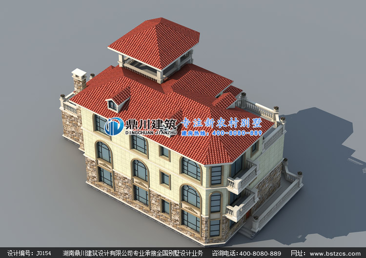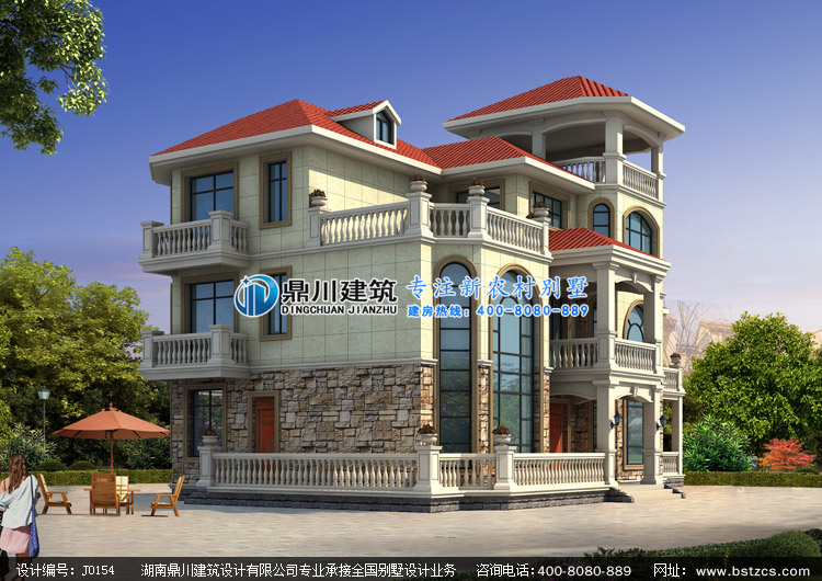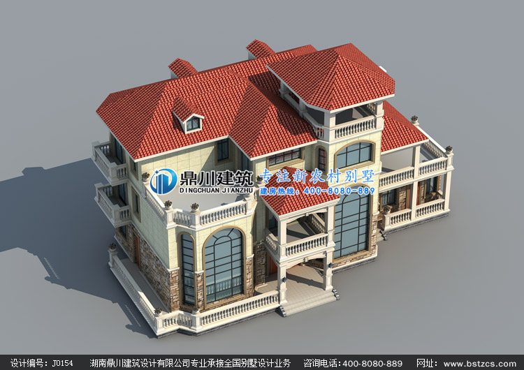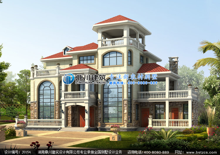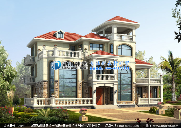 > 設(shè)計(jì)案例 > J0154復(fù)式三層帶涼亭歐式別墅設(shè)計(jì)圖紙外觀效果圖,鼎川建筑三層農(nóng)村別墅圖紙私人定制設(shè)計(jì)
