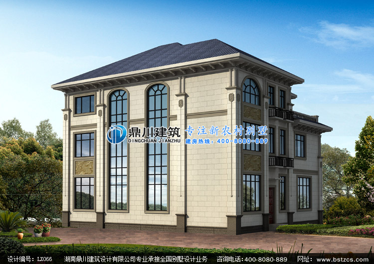 LX066復式三層歐式別墅設(shè)計圖紙外觀效果圖,鄉(xiāng)村三層歐式別墅私人定制設(shè)計